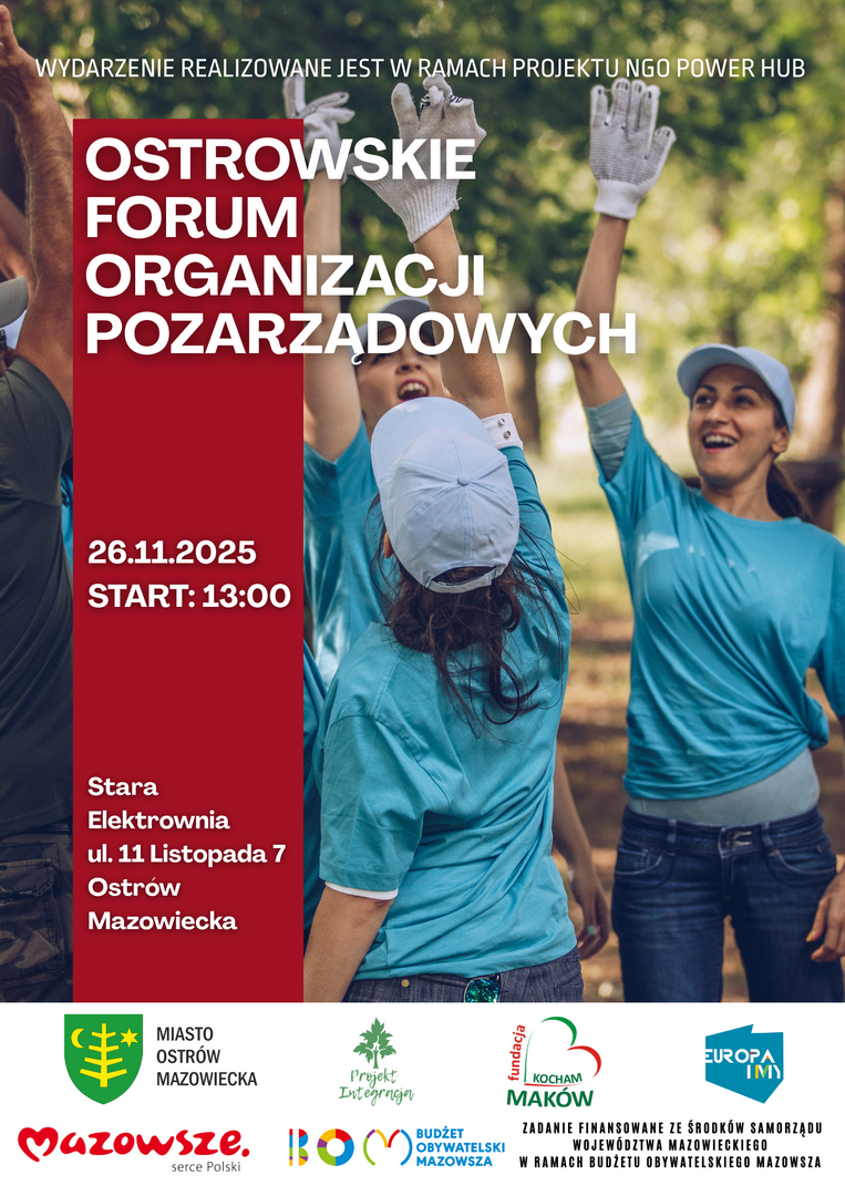 Wydarzenie realizowane jest w ramach projektu „NGO Power Hub”, finansowanego ze środków Samorządu Województwa Mazowieckiego w ramach Budżetu Obywatelskiego Mazowsza.